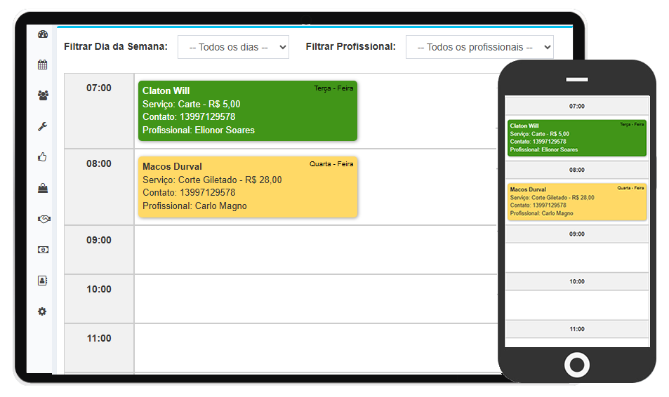 Sua agenda na palma da mão, fácil de usar em todos os dispositivos.